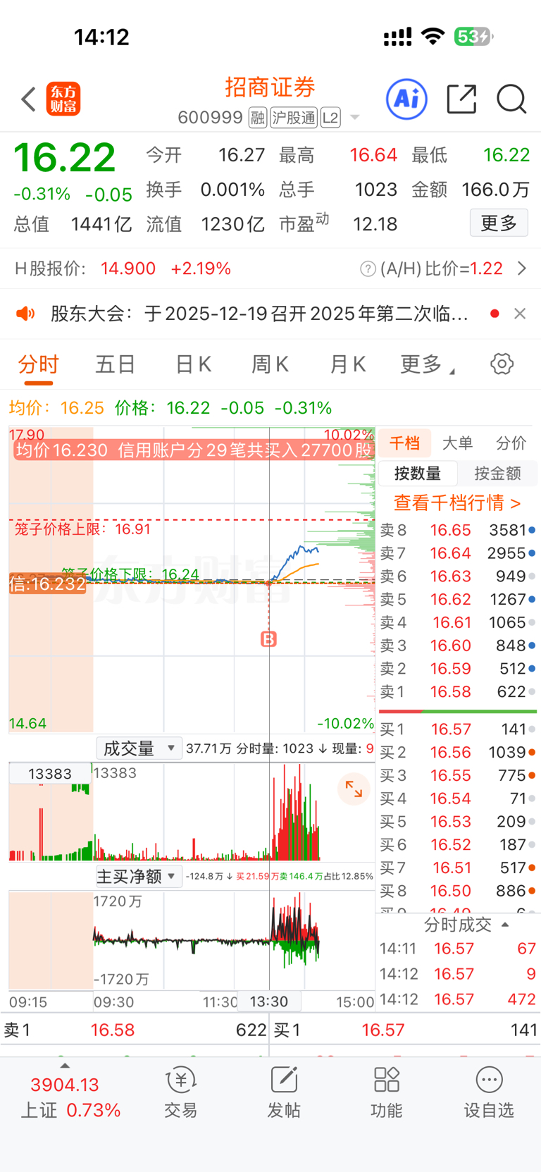 $招商证券(SH600999)$ 后悔死了。我把融资买入撤了。只买了自己的45万。融资50万我撤单了