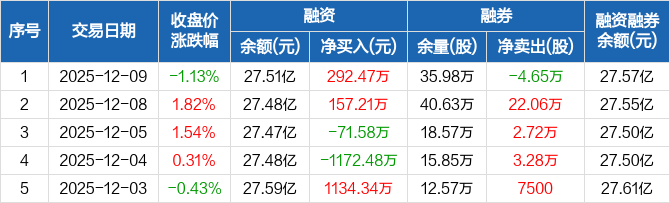 招商证券:融资净买入292.47万元,融资余额27.51亿元(12-09)