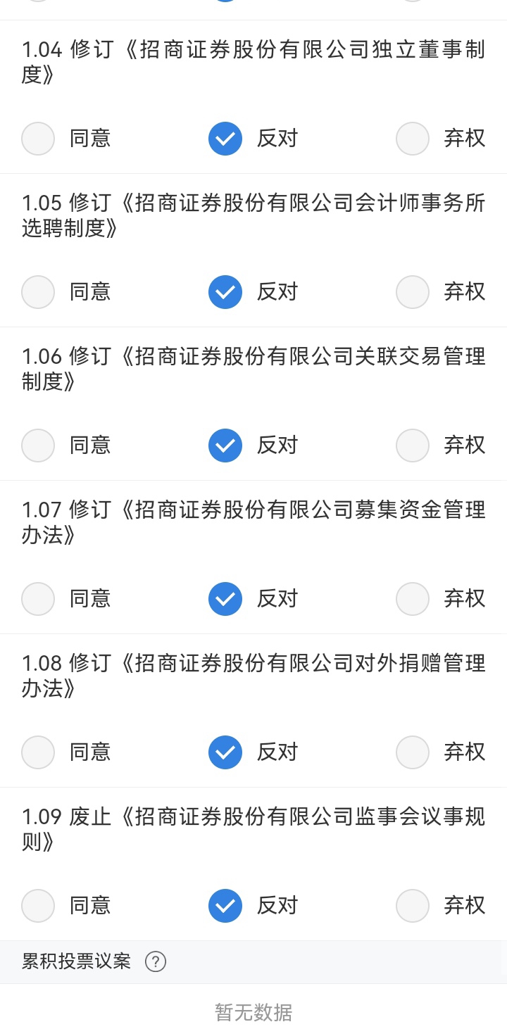 $招商证券(SH600999)$ 凭你股价,全部反对票