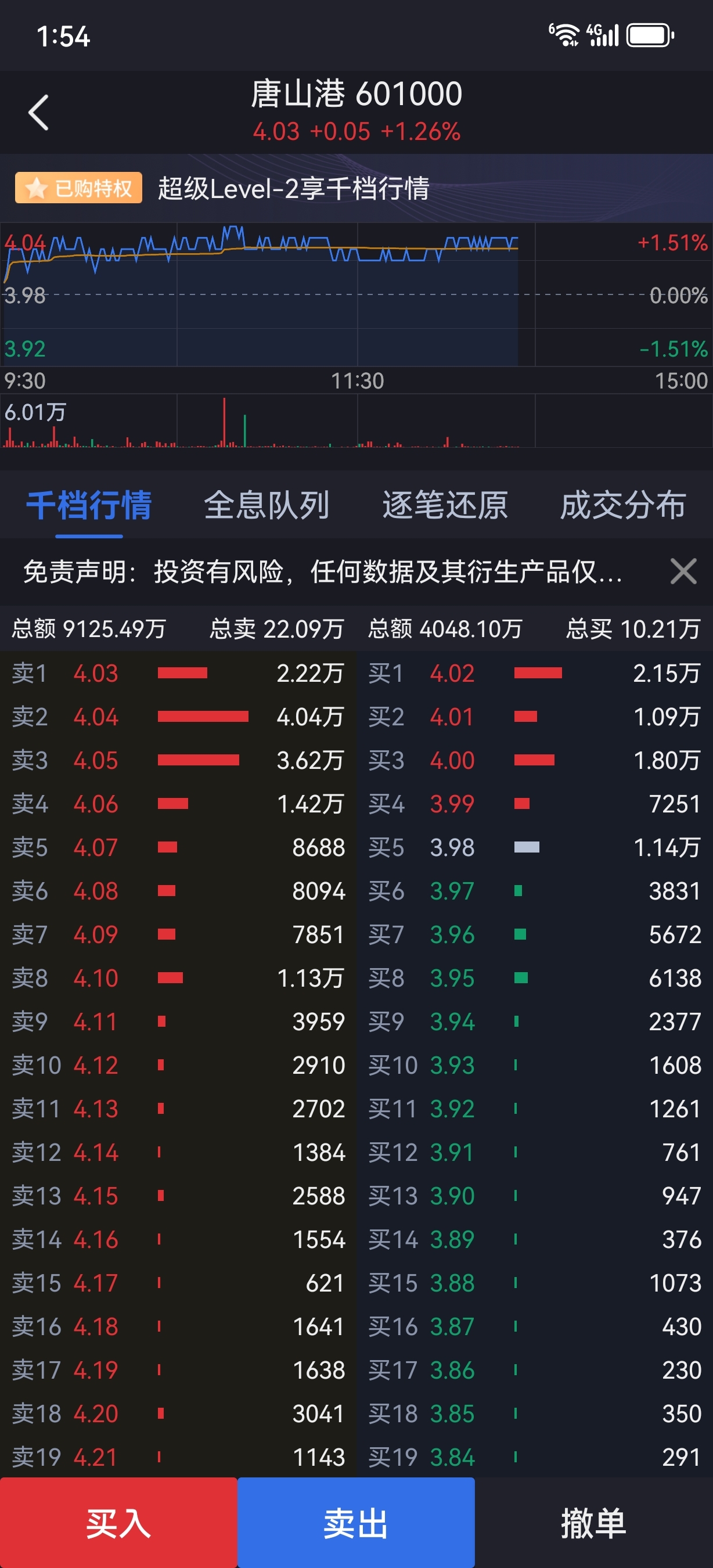 $唐山港(SH601000)$ 22:10,上方卖盘9000万