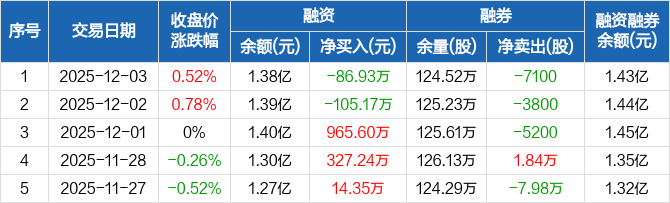唐山港:融资净偿还86.93万元,融资余额1.38亿元(12-03)