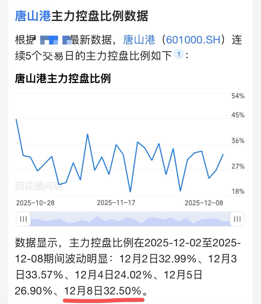 $唐山港(SH601000)$ 主力控盘比例持续上升,故意打压洗盘吸筹。