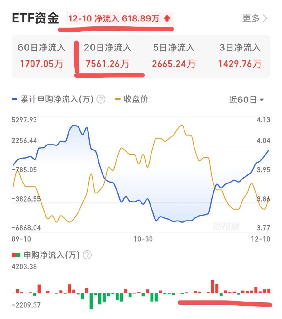 ETF昨天又是净流入618.89万,20日更是流入7561.26万!长期风向标,