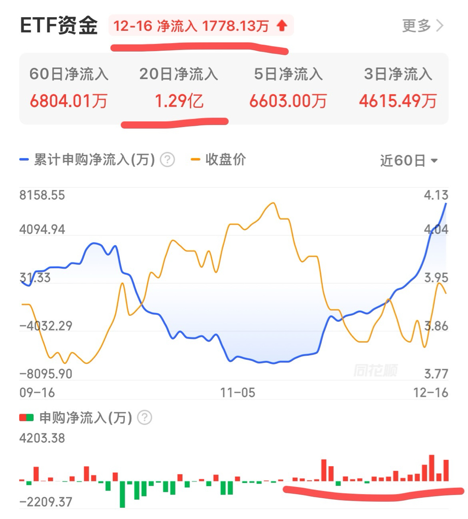 风向标ETF资金买入的坚决度太高了,持续净流入!昨天大幅净流入1778万,20日