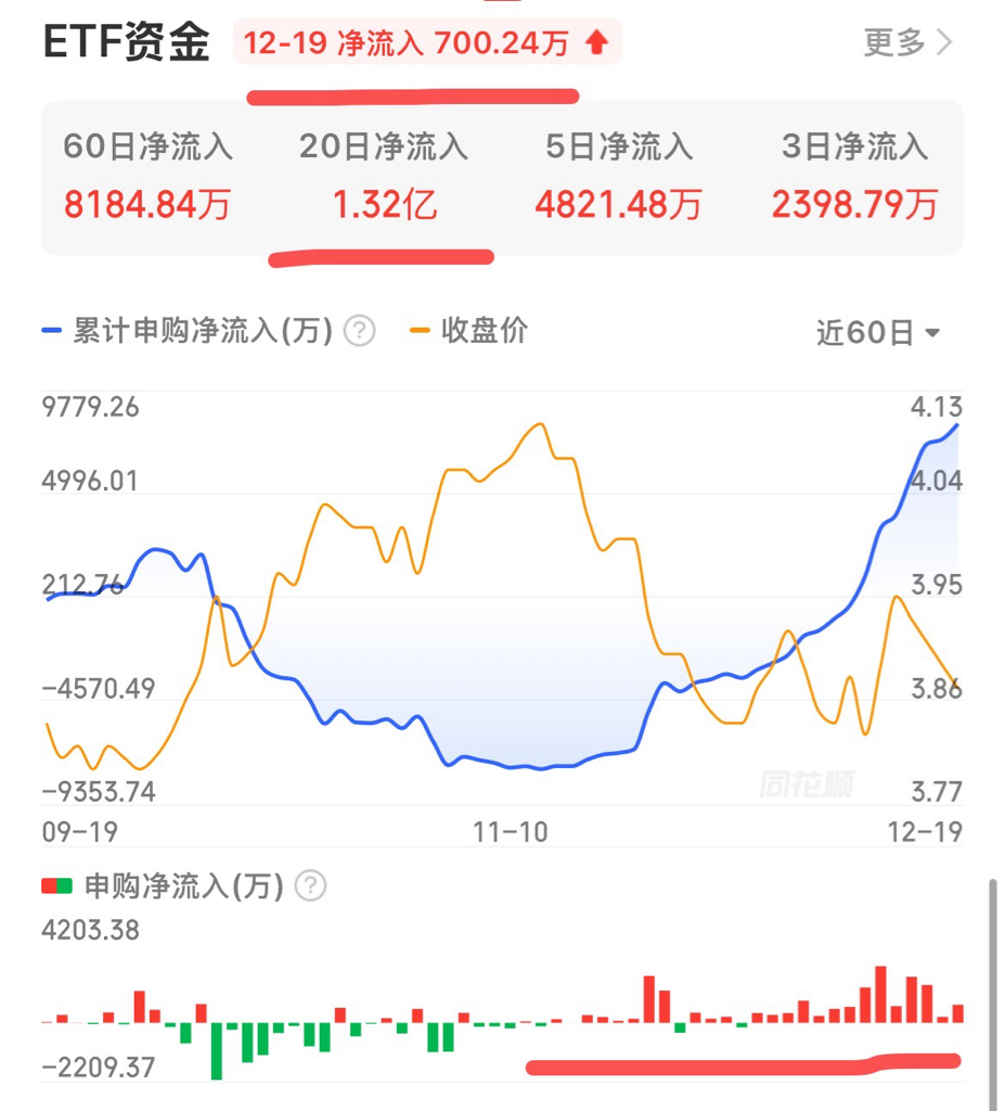 不破3.85都视为洗盘吸筹中,3.85近期强支撑!ETF资金上周五继续持续净流入