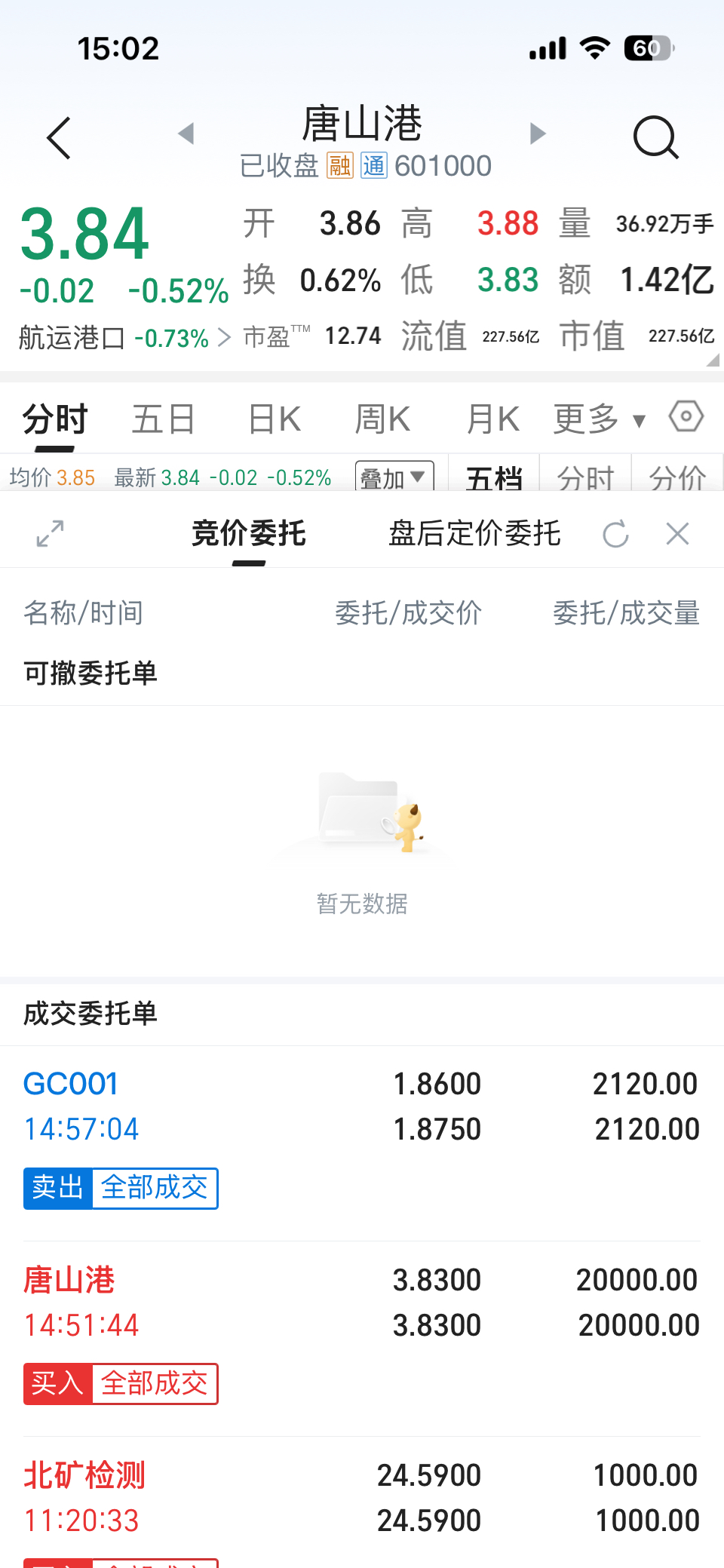 $唐山港(SH601000)$ 加上这2万股,今天共扫货20万股。