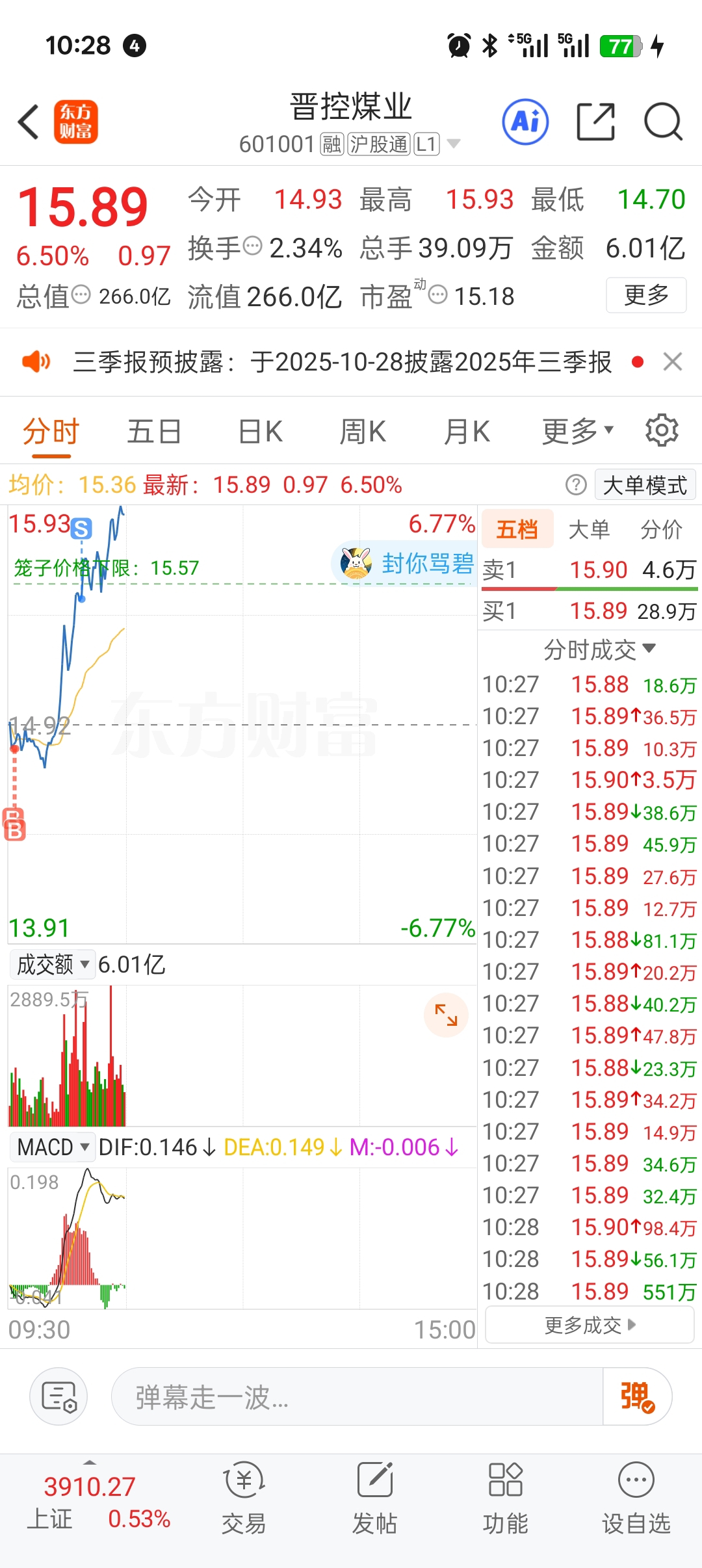 $晋控煤业(SH601001)$ T飞了( ••` )