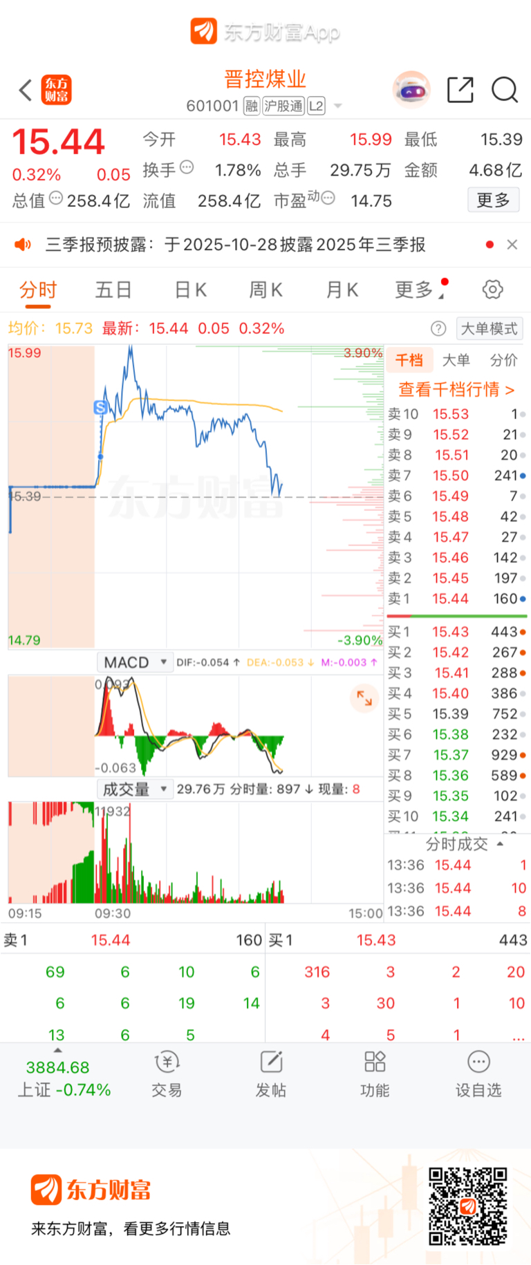 $晋控煤业(SH601001)$ 早上一看卖飞了,下午一看