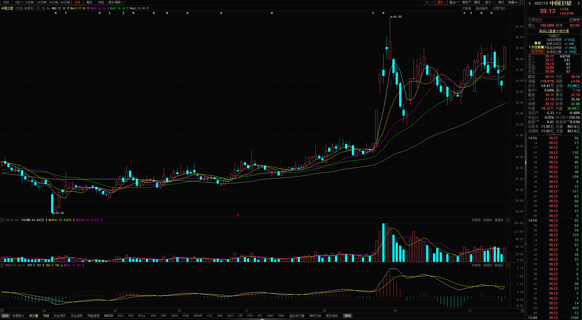 上周的走势比较有意思,周一冲高回落后,连续回调,周四跌破20日均线。本以为走势转弱,但周五直接高开拉板,从成交量来看,多头共识很高,很有机会向上持续爆发。所以今天如果能够高开迈过39.48的话,老文会上去搭个便机。