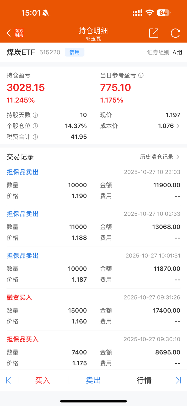 今日个股跌2%,我仅仅受损0.46%,然后靠煤炭ETF最终还是整体拉回正收益