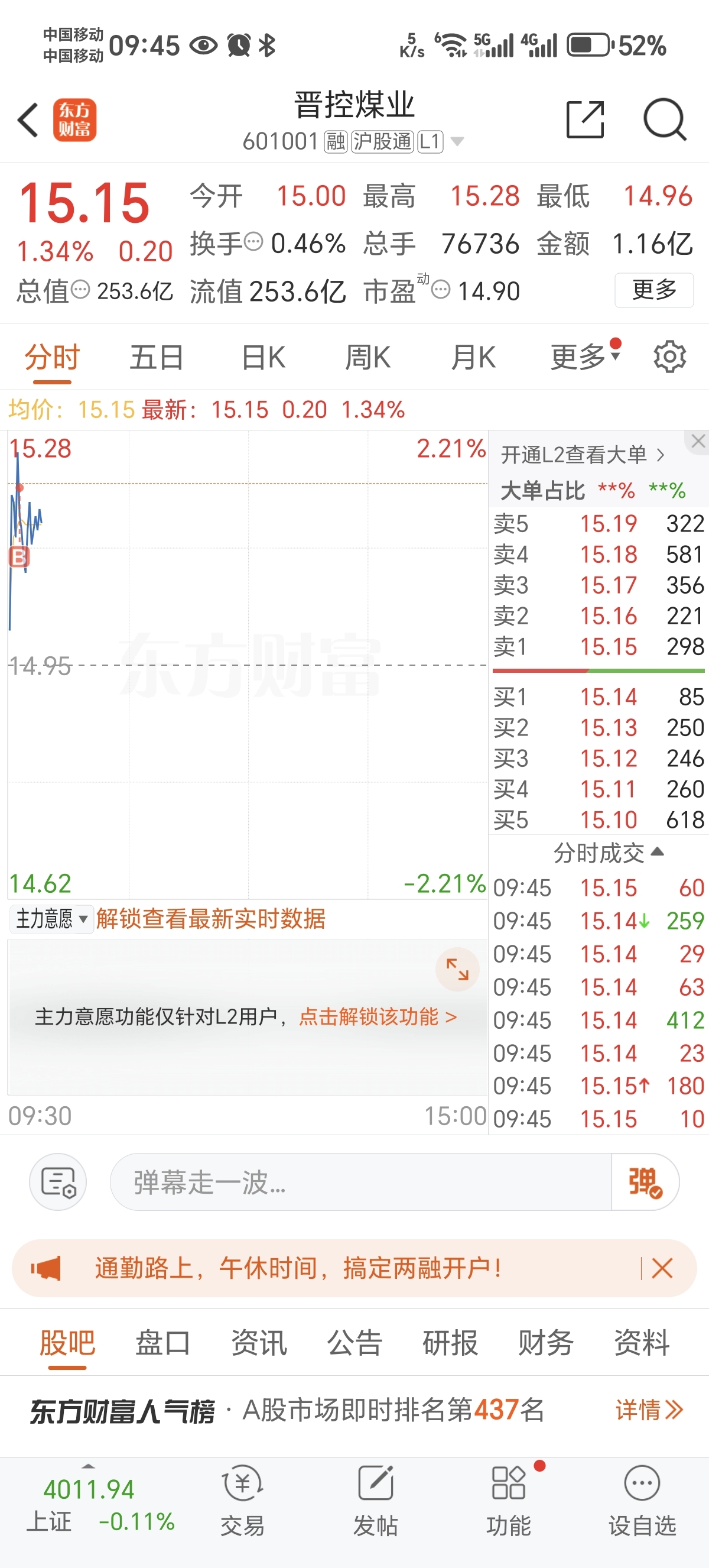 $晋控煤业(SH601001)$ 不好意思,被我砸盘了