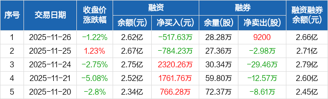 晋控煤业:融资净偿还517.63万元,融资余额2.62亿元(11-26)