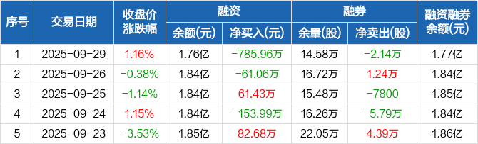 晋亿实业:融资净偿还785.96万元,融资余额1.76亿元(09-29)