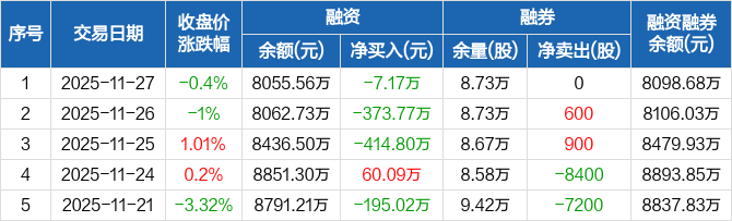 柳钢股份:连续3日融资净偿还累计795.74万元(11-27)