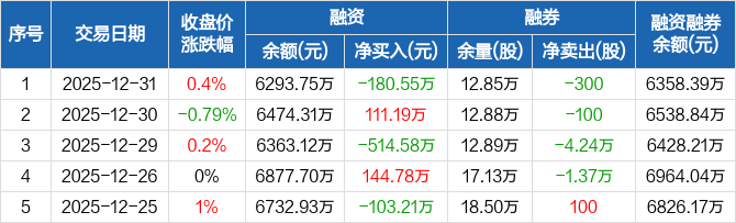 柳钢股份:融资余额6293.75万元,创近一年新低(12-31)