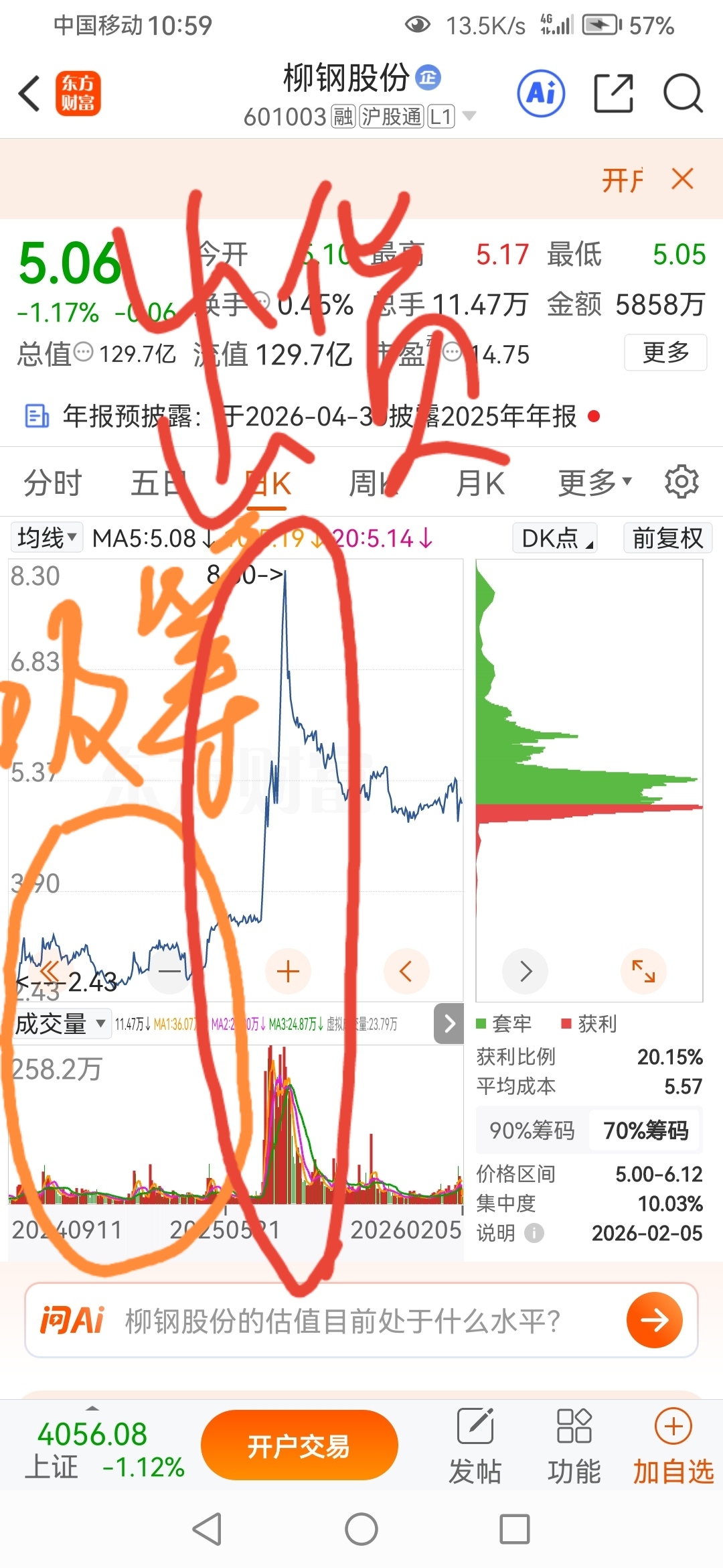 $柳钢股份(SH601003)$ 主力已把大部分的货出完了,还剩一点在下跌中出货,散户别玩了。