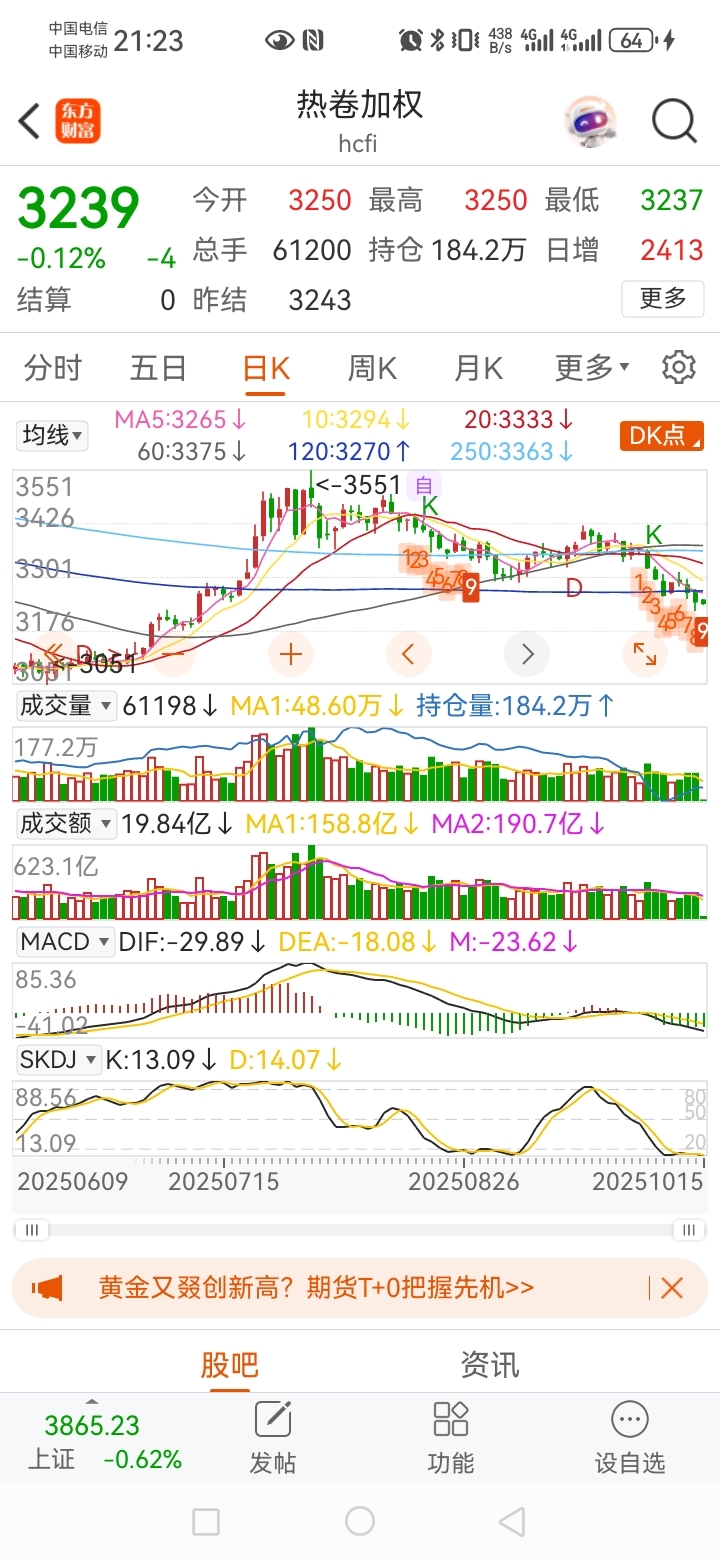 热卷又破位了,第四季度热卷价格还是起不来,说明需求端还是没有改善,只能还是继续内