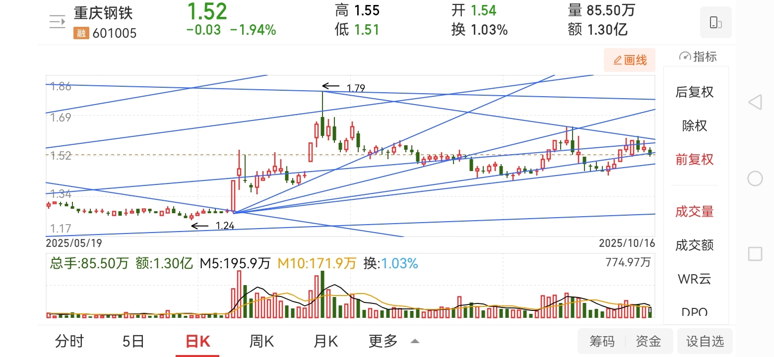 $重庆钢铁(SH601005)$ 下午不知道1.5能不能支撑的住。行情已经结束。