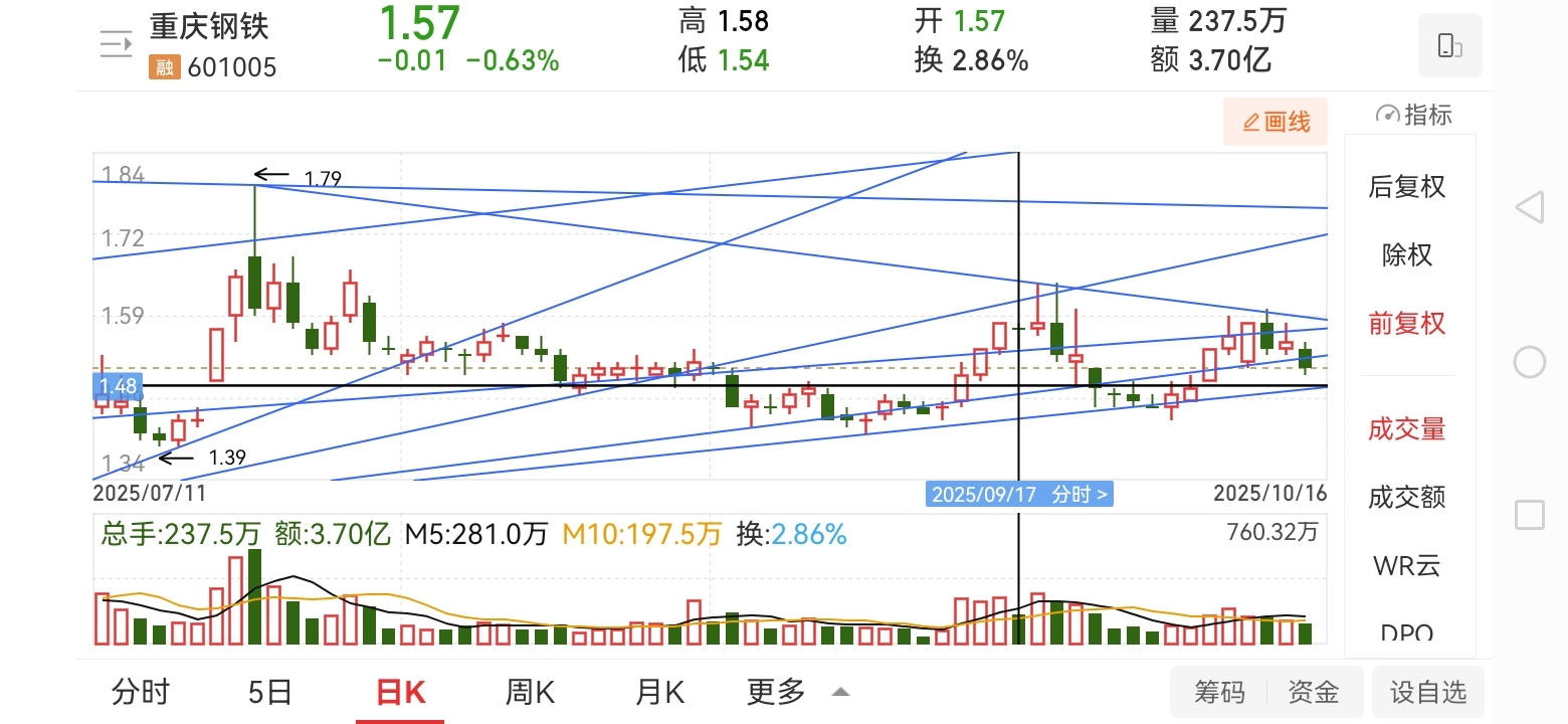 $重庆钢铁(SH601005)$ 明天第一支撑位1.48,第二支撑位1.45,第三支撑位1.43,第四支撑位1.41