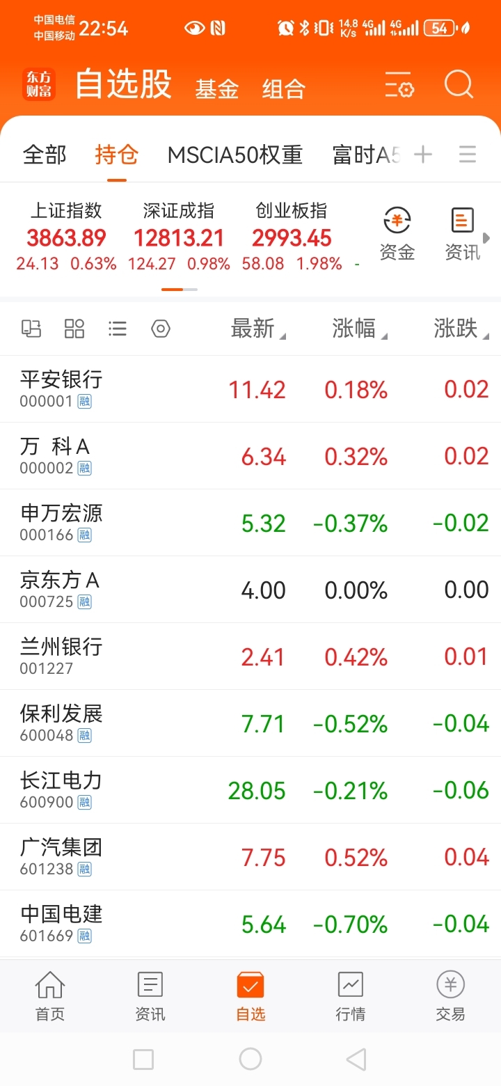 目前持有22支股票,基本都是央国企。