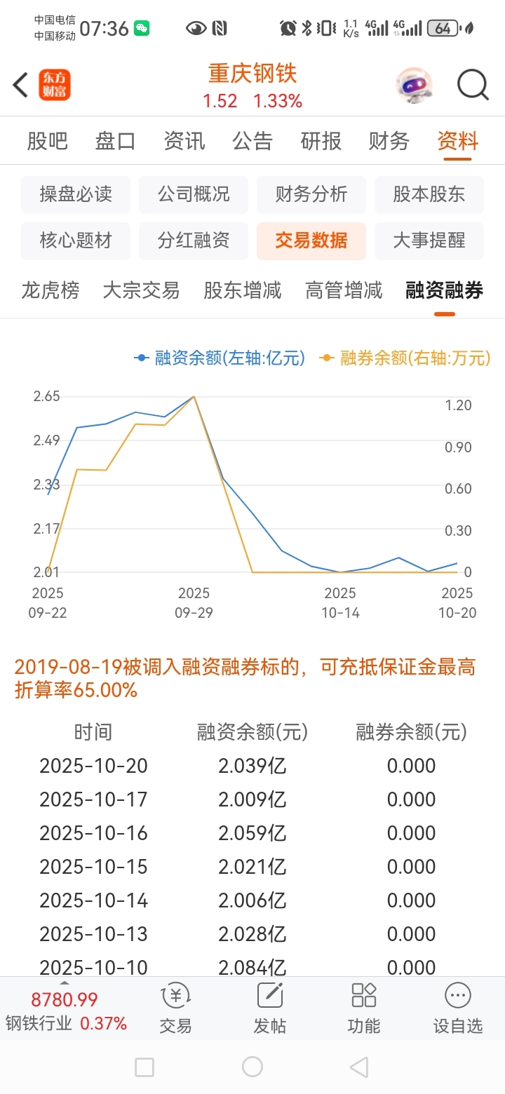 $重庆钢铁(SH601005)$ 昨天短线融资盘加仓了,今天冲高果断减仓,不然会被融资盘砸下来。