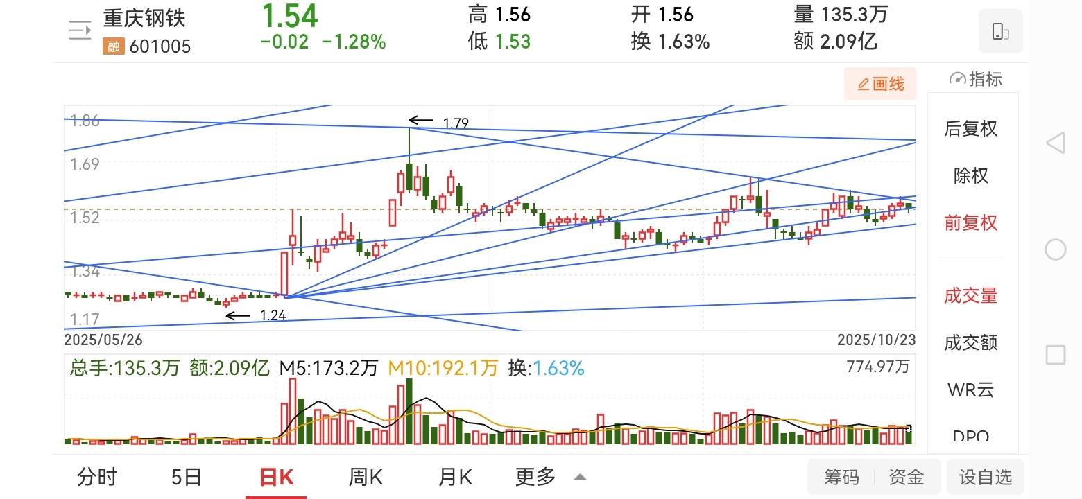 $重庆钢铁(SH601005)$ 看来还是无法突破三角收敛区域,被上轨压制,预计还得回到三角收敛区域下轨1.5。