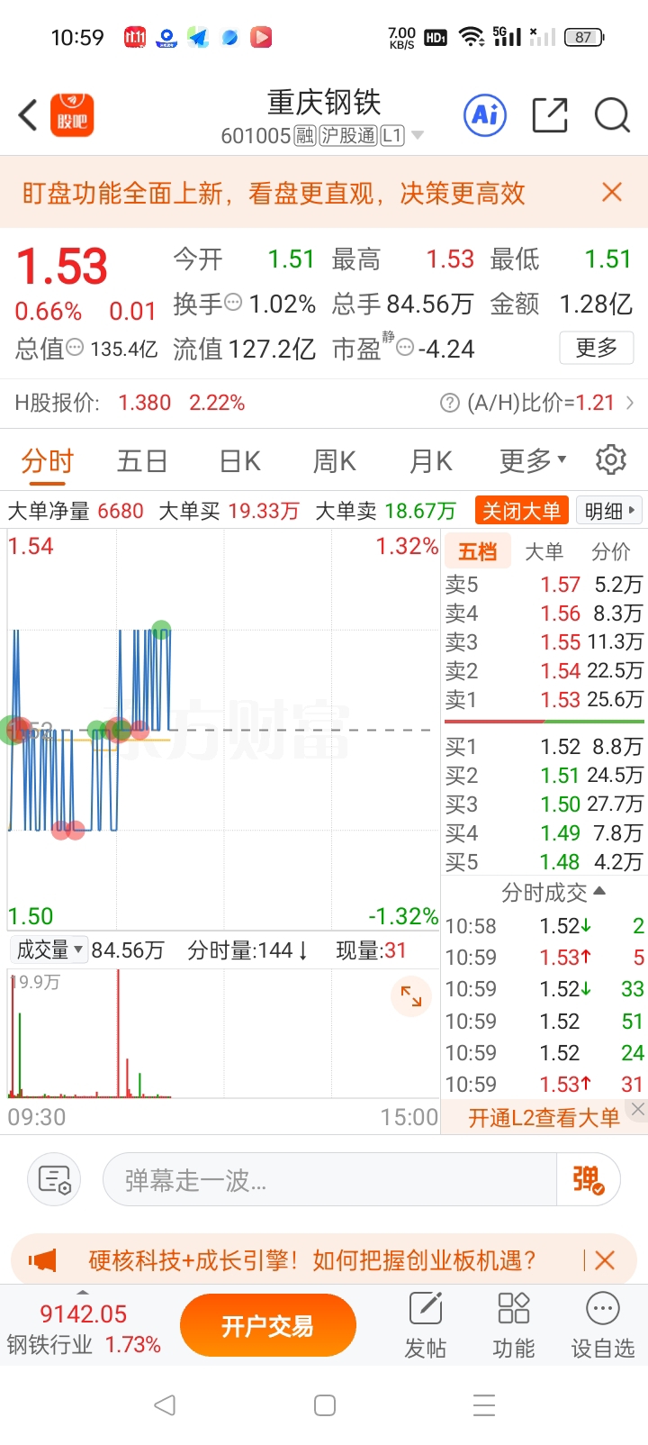 $重庆钢铁(SH601005)$ 钢铁的涨幅都比你的股价高!你说你丢不丢人