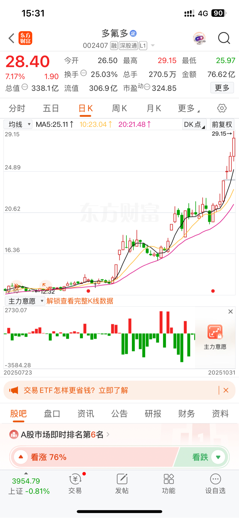 #多氟多我已经翻倍了。重庆钢铁拿了两年。清仓了。下周赶快转移阵地。没有希望的