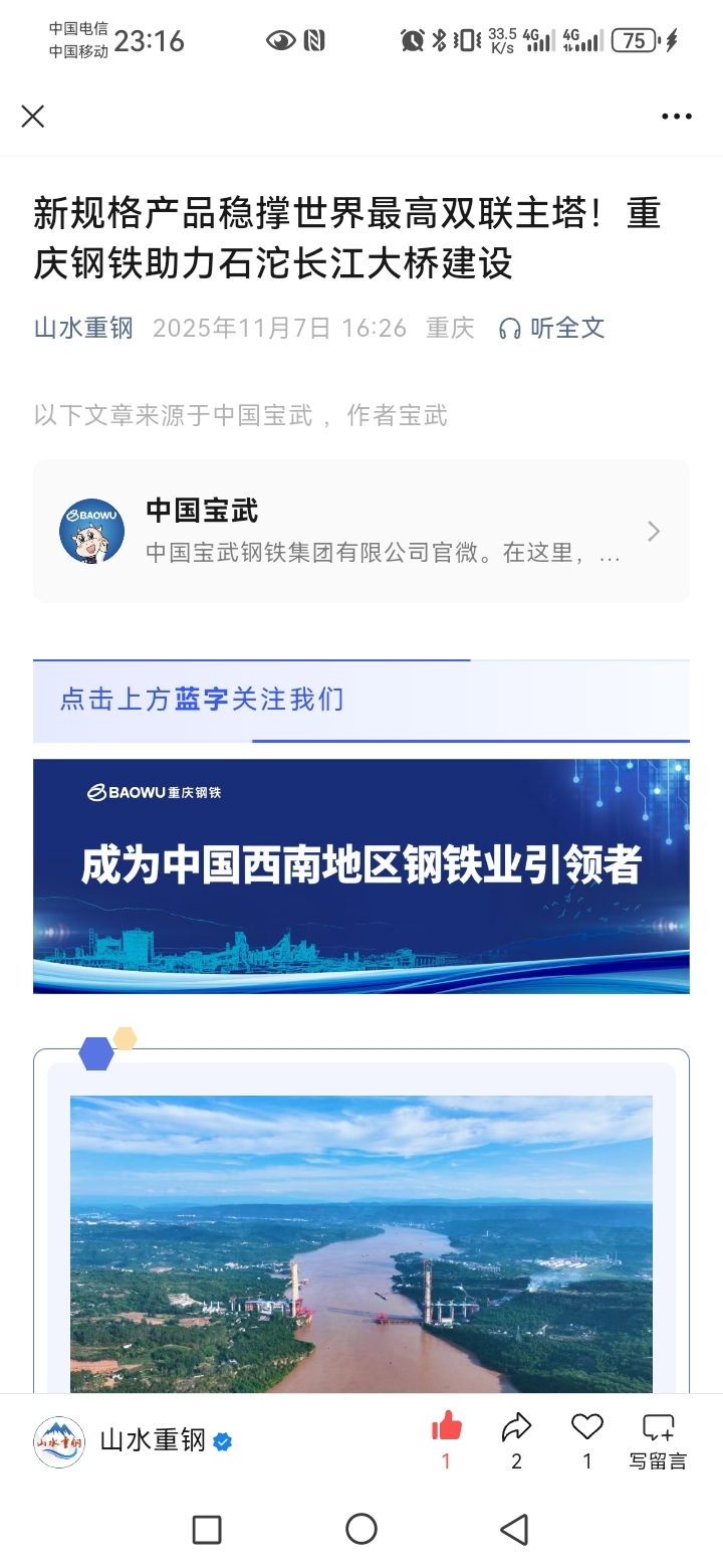 $重庆钢铁(SH601005)$ 重磅消息燃爆钢铁业!重钢桥梁用钢用量再次刷新记录!