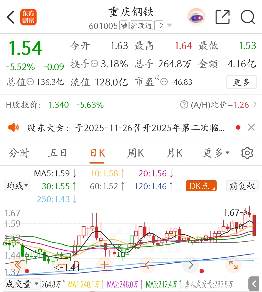 $重庆钢铁(SH601005)$ 虫钢啊虫钢,涨两周不够一天的。