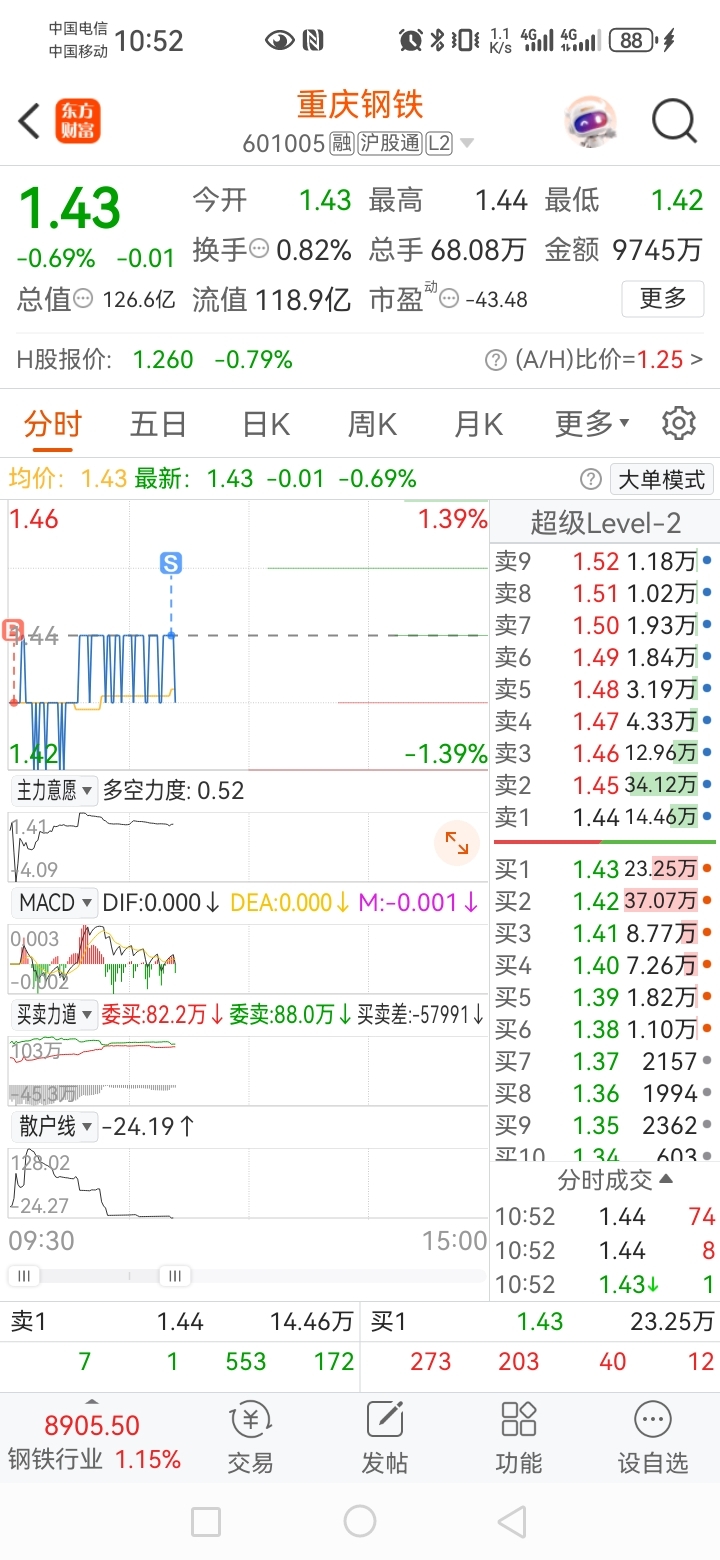 $重庆钢铁(SH601005)$ 知足常乐,菜钱又到手。