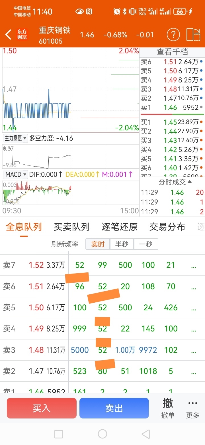 $重庆钢铁(SH601005)$ 兄弟们,赶紧买呀,让我卖出啊,上面52手都是我的,兄弟们抓紧买呀。
