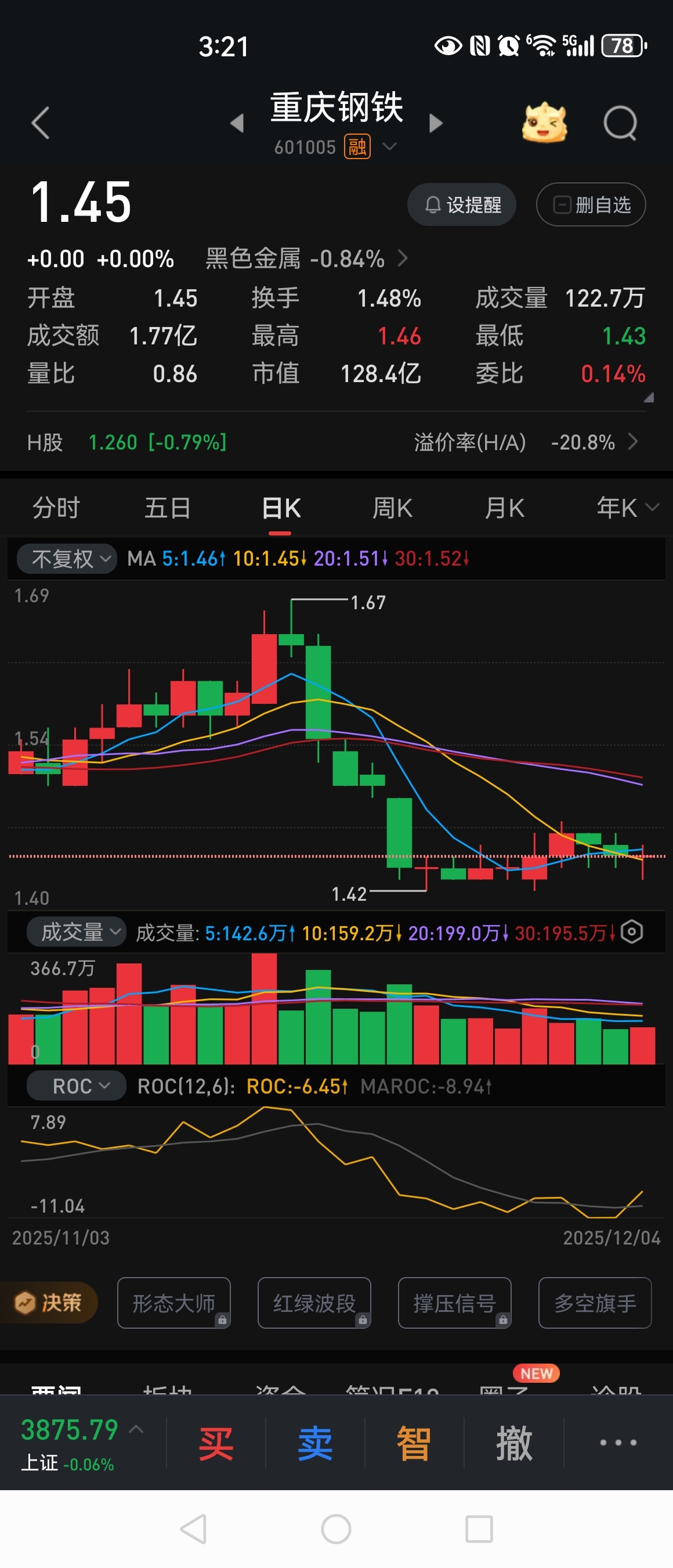 $重庆钢铁(SH601005)$ 对于大量出完货的重庆钢铁来讲,现在基本在底部震荡的时候,可以收集一些筹码了,主力还未完全出货,下部筹码还有一部分,本人预估未来还有1~2波小行情,做长线的,你们随意,做短线的。未来拉升可以跑路了。见好就收。