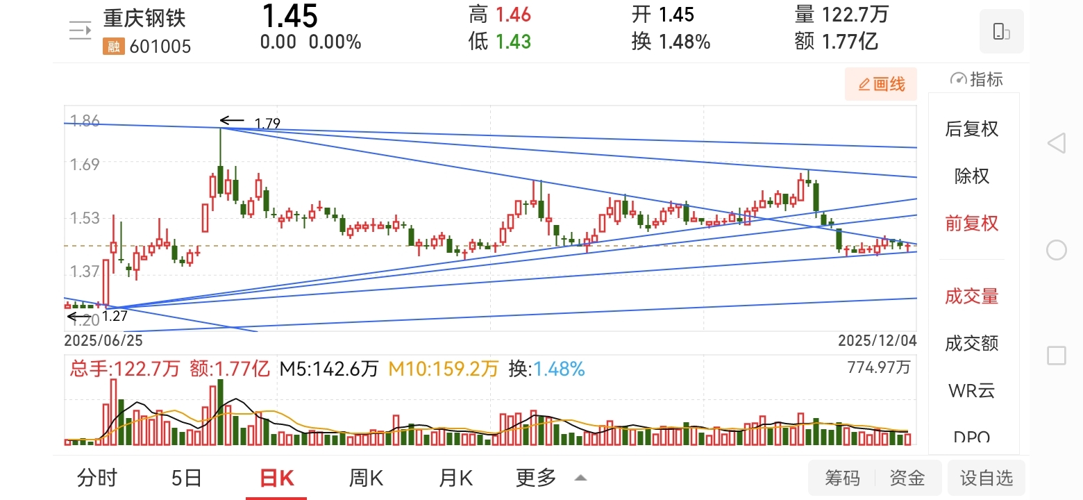 $重庆钢铁(SH601005)$ 三角收敛区域极限末端。拉升前还要砸破年线,不破不立,