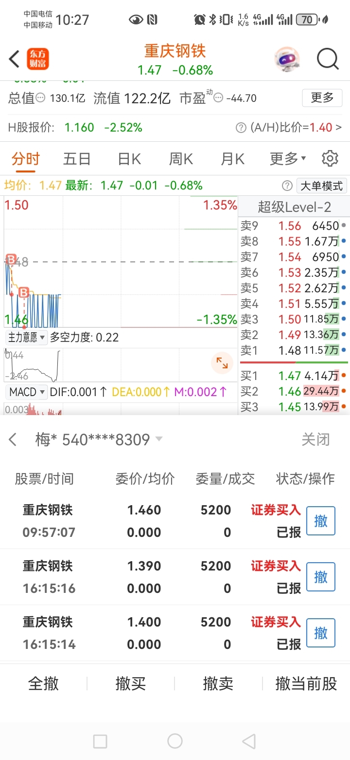 $重庆钢铁(SH601005)$ 给自己护盘。