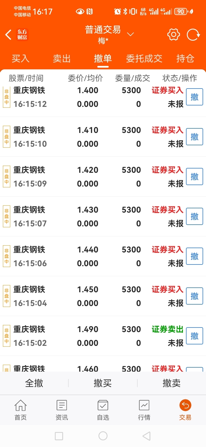 $重庆钢铁(SH601005)$ 今天不错1.46价格目前排第六名。