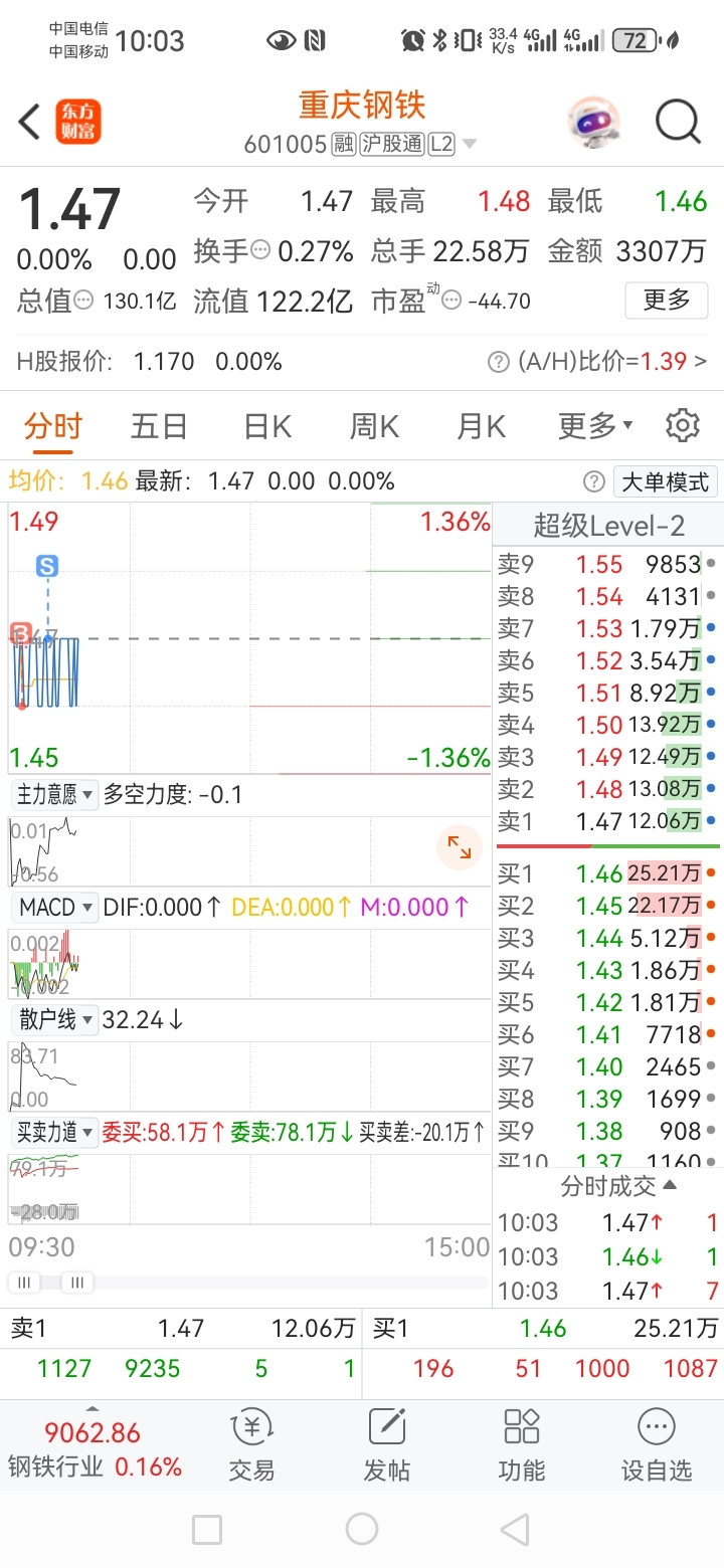 $重庆钢铁(SH601005)$ 菜钱到手,知足常乐。