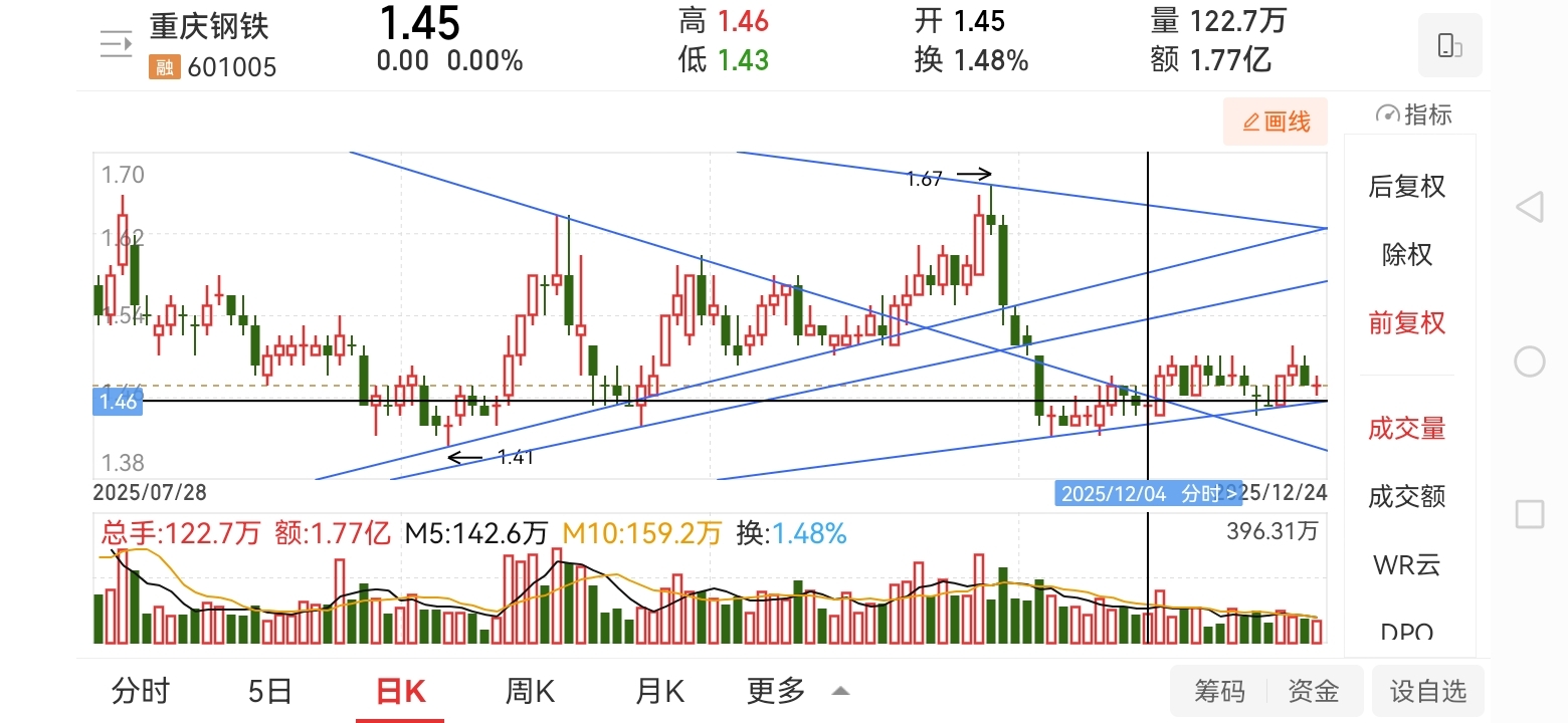 $重庆钢铁(SH601005)$ 4点15分准时挂1.46买单。