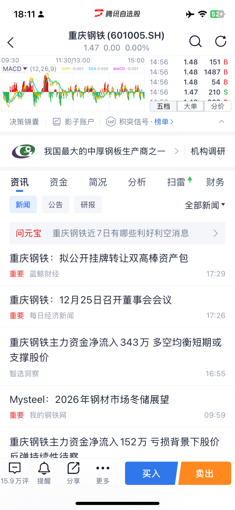 $重庆钢铁(SH601005)$ 什么情况,明天要暴跌吗,幸亏我今天全出了