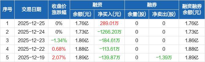 重庆钢铁:融资净买入289.01万元,融资余额1.76亿元(12-25)