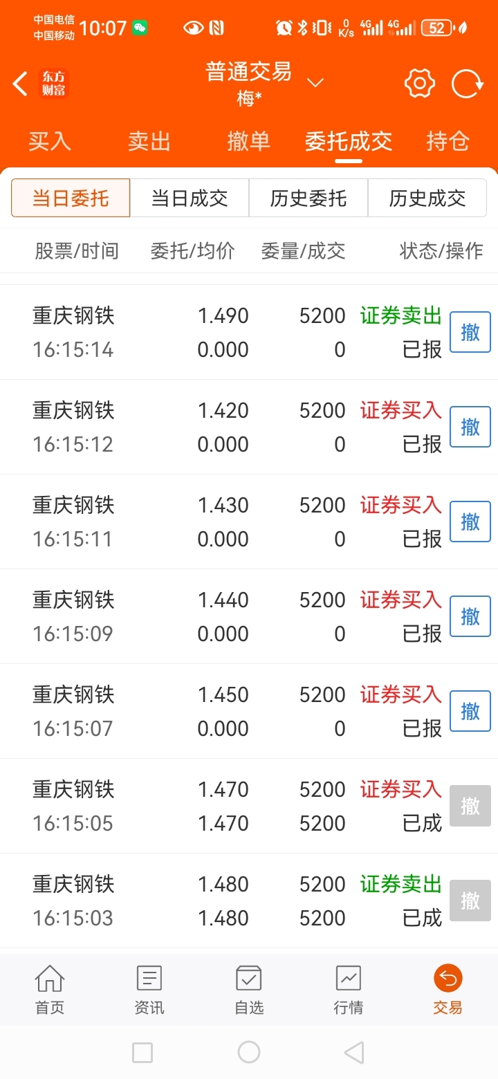 $重庆钢铁(SH601005)$ 1.49和1.50和1.51都给你。