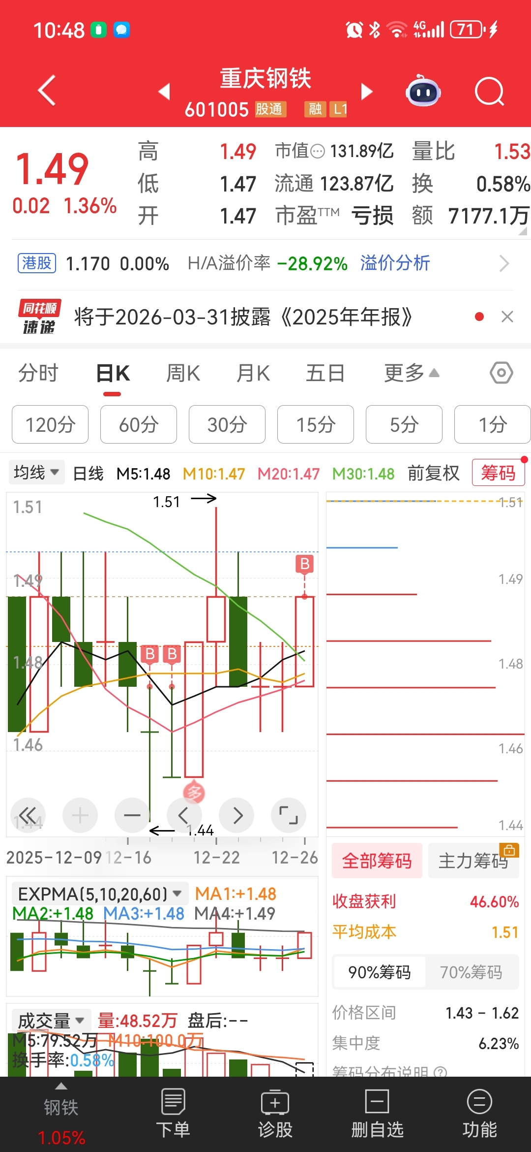 $重庆钢铁(SH601005)$ 有钱就买一点放着,总觉得很划算