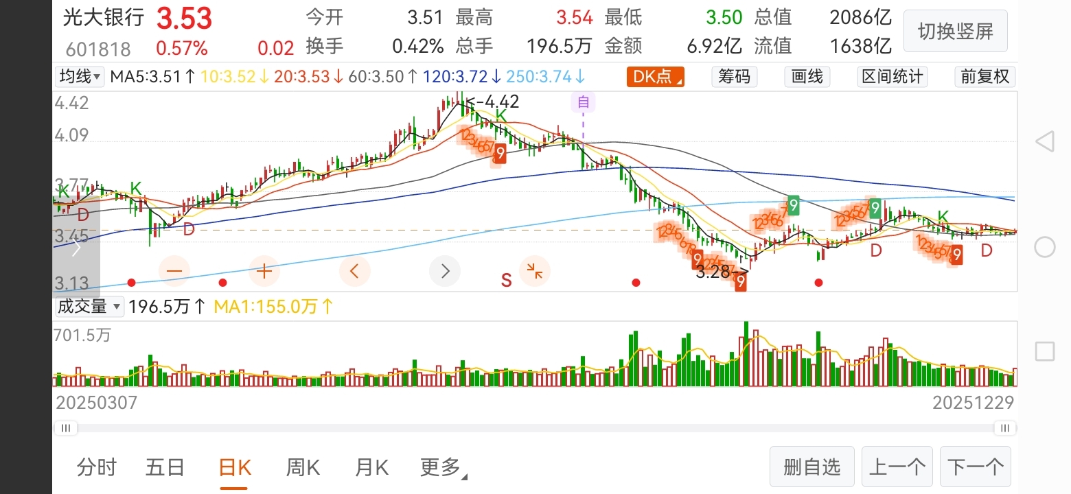 光大银行沿着20日线缓慢上扬,央企银行,股息又高,又不用担心退市,每天T两分。美