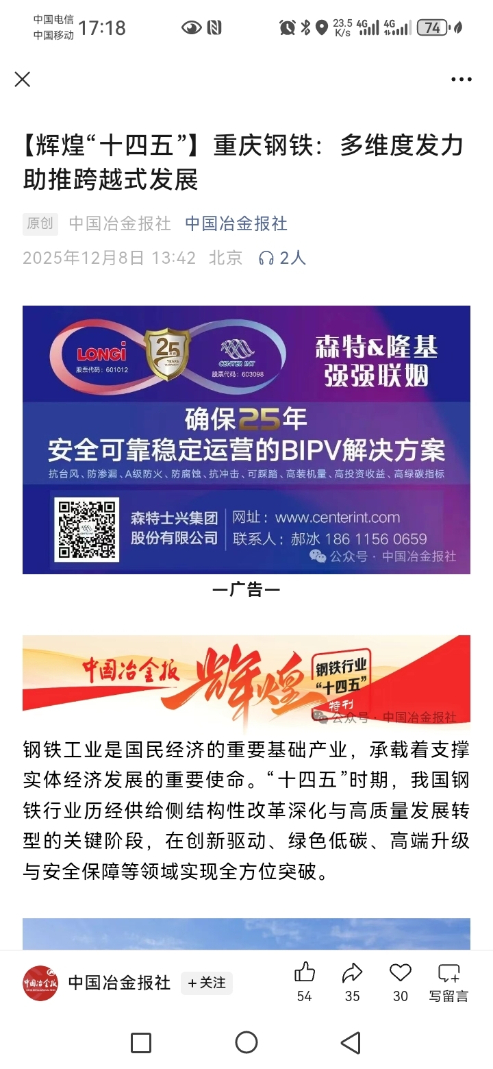 $重庆钢铁(SH601005)$ 重磅利好!重钢“十四五”辉煌收官。特种钢比例显著提升。