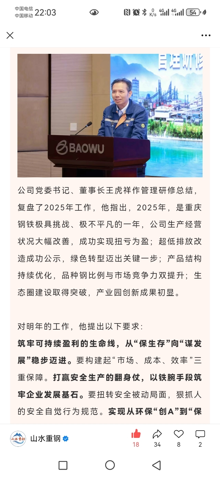 $重庆钢铁(SH601005)$ 又双叒叕超级重磅利好!2025年度成功实现扭亏为盈!2026努力再创佳绩!
