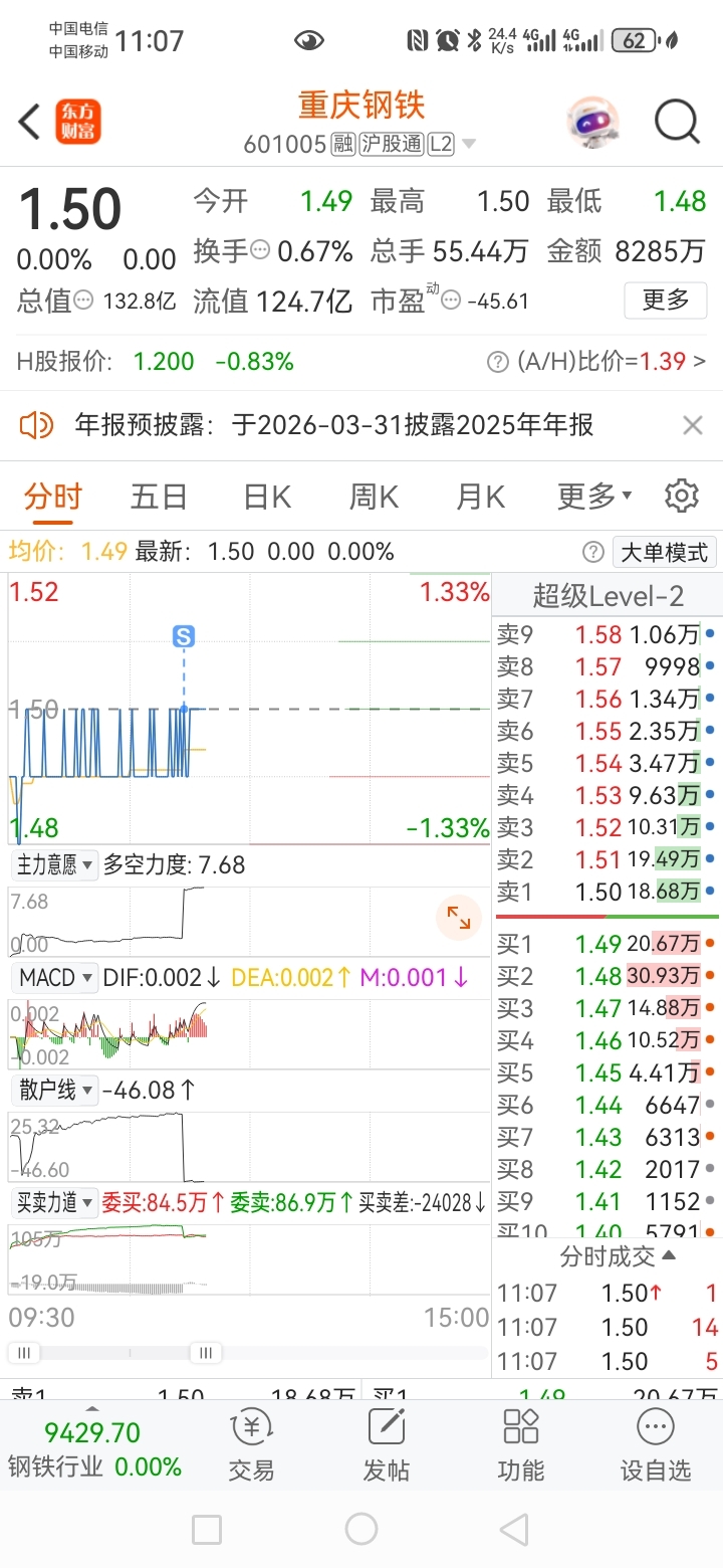 $重庆钢铁(SH601005)$ 不贪 1.5减一点