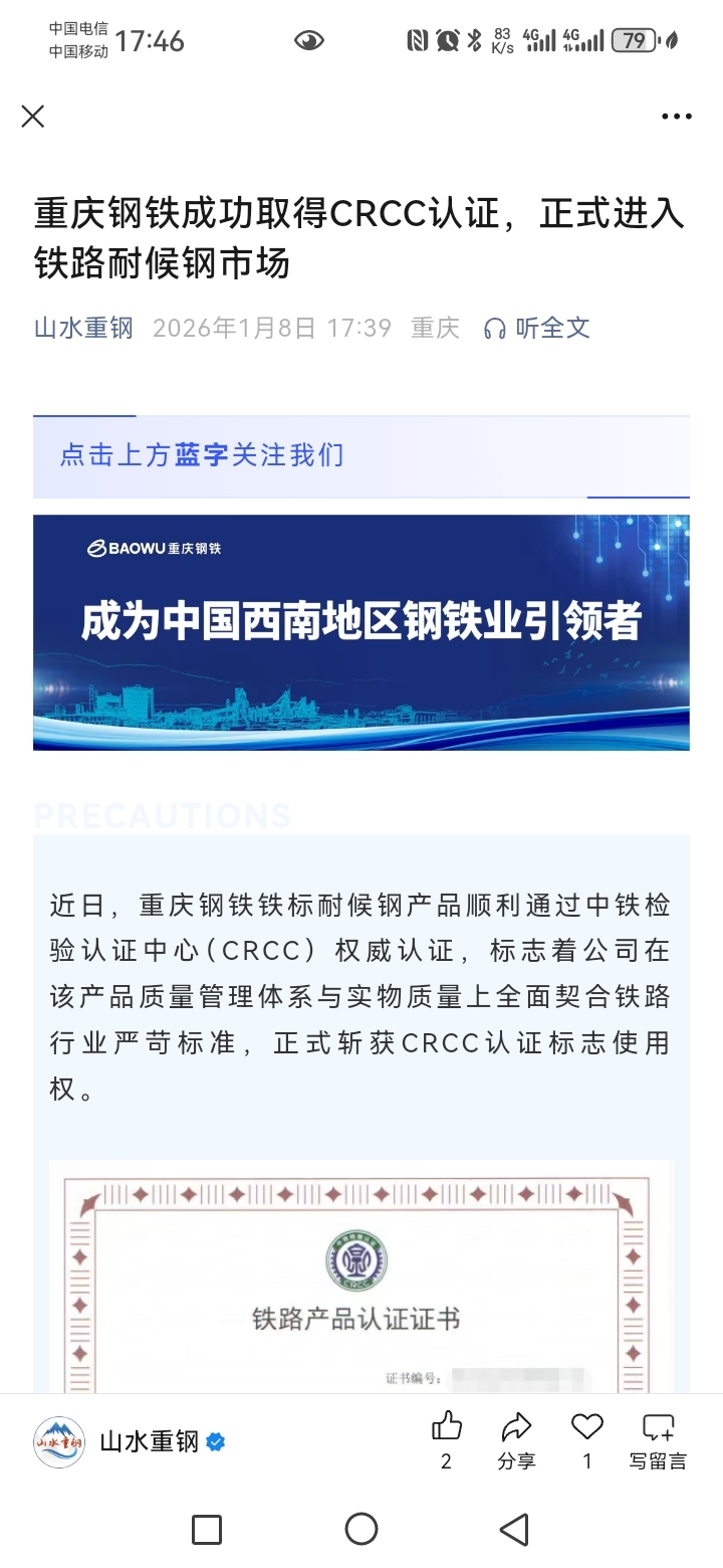 $重庆钢铁(SH601005)$ 重磅来袭。重钢威武霸气。