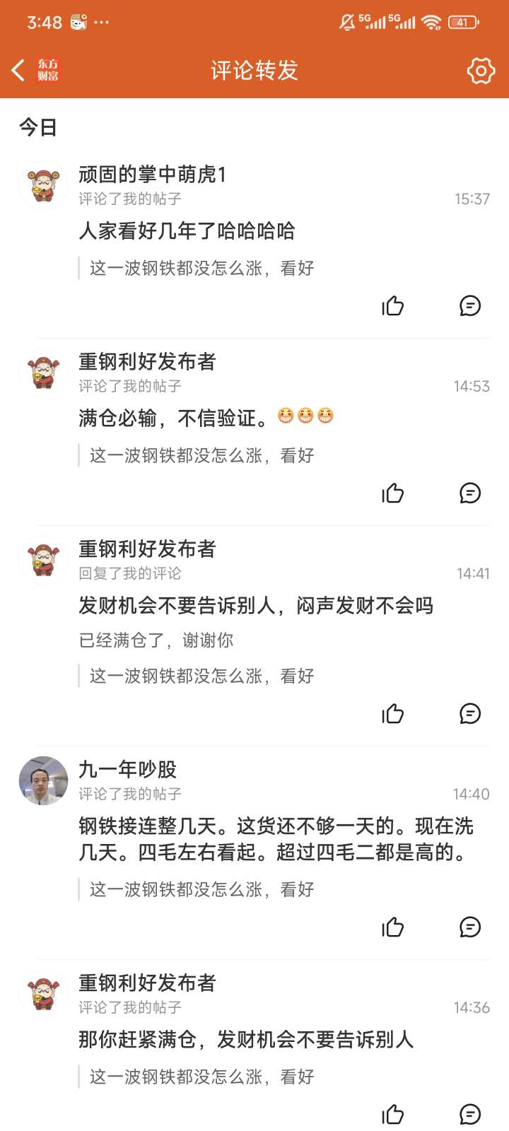 这个重钢利好是不是有病啊?我说看好,他说发财的机会不要和别人说,叫我满仓。我回复