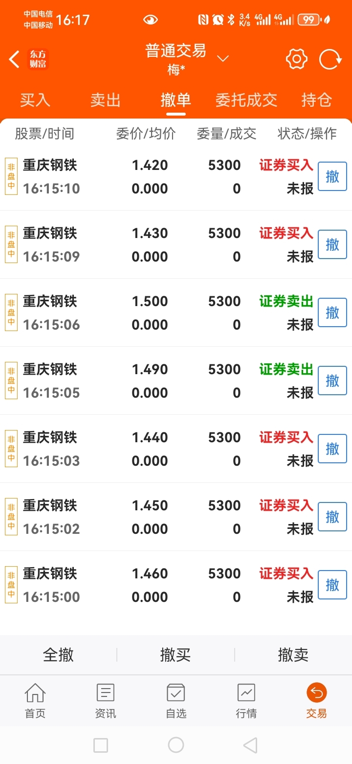 $重庆钢铁(SH601005)$  明天继续。