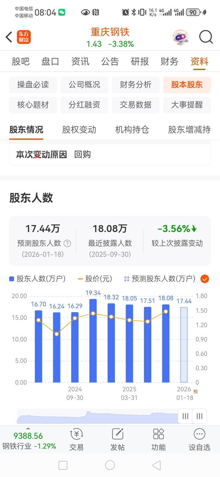 $重庆钢铁(SH601005)$ 今天还得下跌啊,上个星期五抄底散户增加近2千人。
